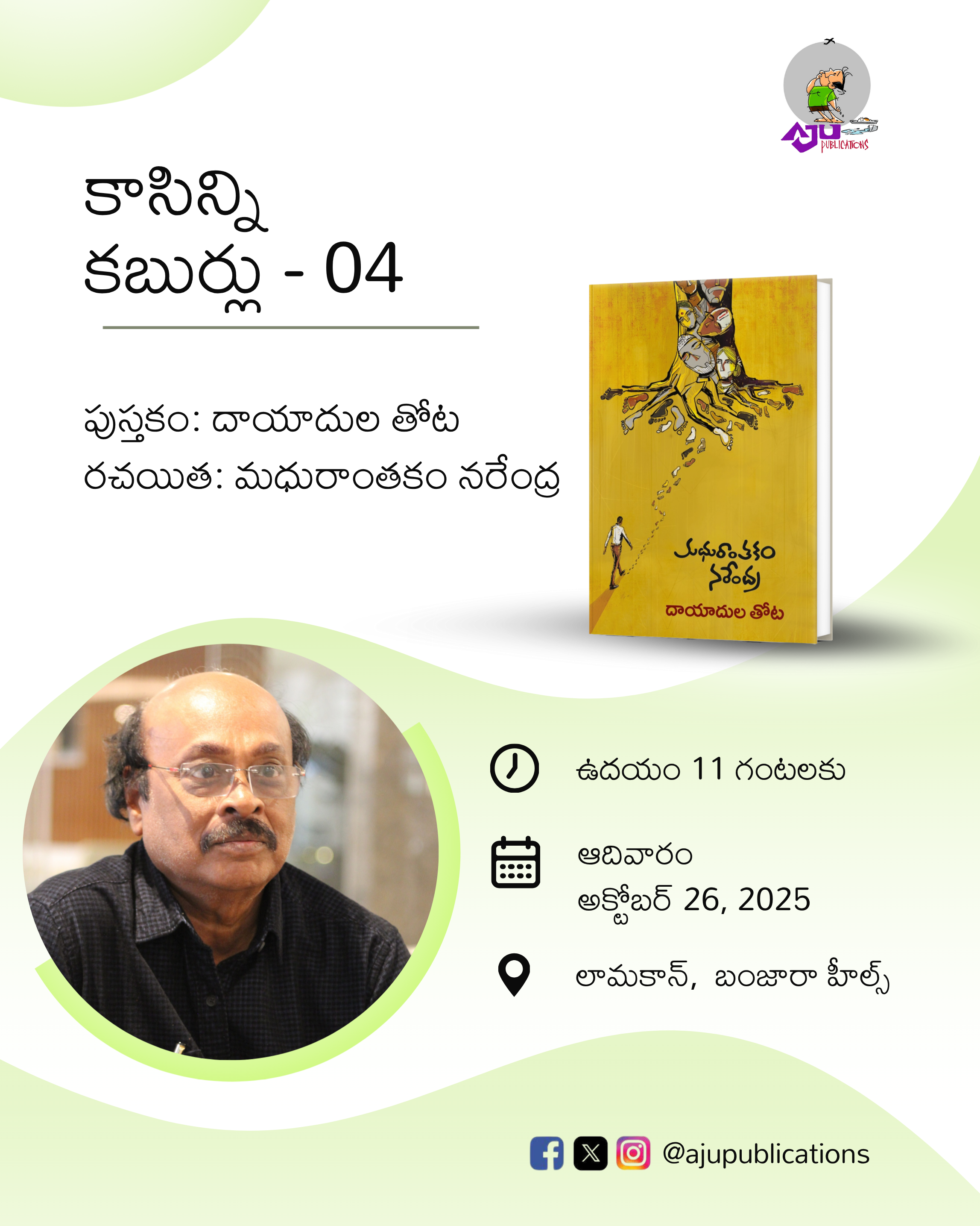 కేంద్ర సాహిత్య అకాడమీ అవార్డు గ్రహీత మధురాంతకం నరేంద్ర గారు, ఆయన రచించిన "దాయాదుల తోట" నవలా విశేషాలు పాఠకులతో పంచుకోడానికి ఈ నెల 26న లామకాన్కు వస్తున్నారు🤗