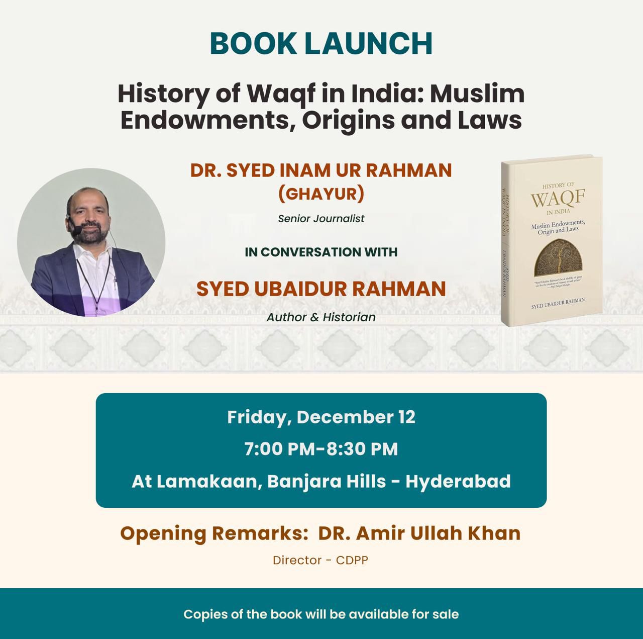 Join us for the book launch of ‘History of Waqf in India: Muslim Endowments, Origin and Laws’. Copies of the book will be available for sale at the event.