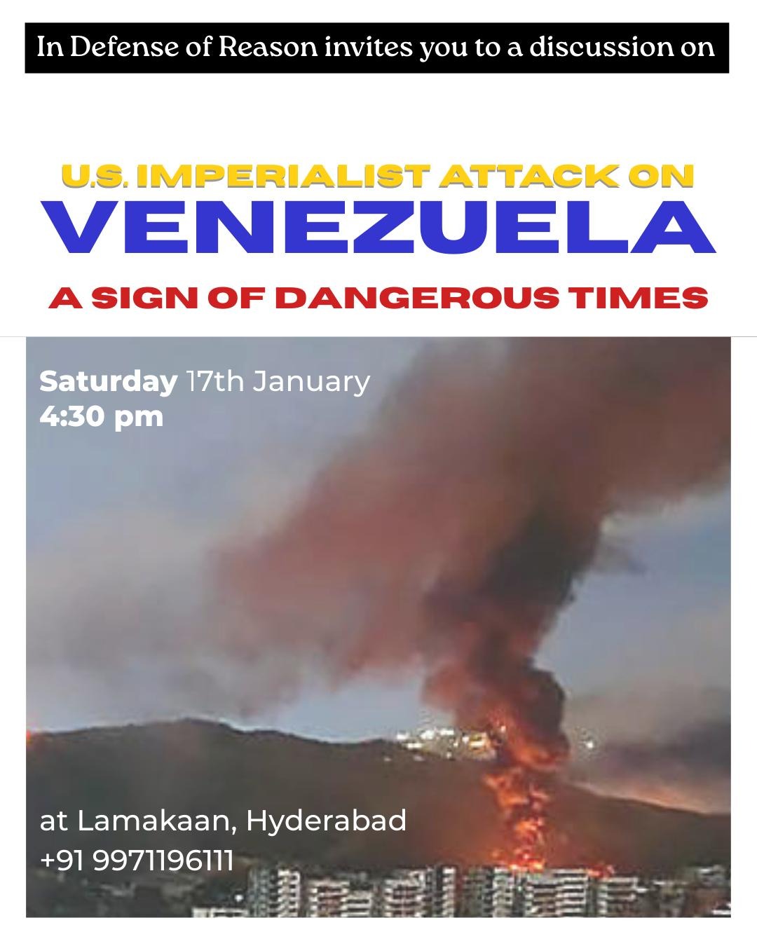 The US imperialist attack on Venezuela and abduction of its president Nicolas Madurao on 3rd January is a momentous event in world history. Not that this is the first such imperialist interference into a sovereign nation, but coming as it is at a time when US imperialism is clearly on its decline in the face of increasing rivalry with the Sino-Russian imperialist axis, it clearly is an ominous sign for the global politics in the days to come. This becomes especially dangerous because a reckless person like Donald Trump is at the helm of affairs in the US. Against this backdrop it is pertinent to ask what is the motive of US attack on Venezuela? What it means for the current world order? Where the imperialist system heading the humanity to? What the justice loving people across the world need to do for securing a better future for humanity? It is to discuss these questions that In Defense of Reason has planned this discussion. All are welcome to attend this important discussion.