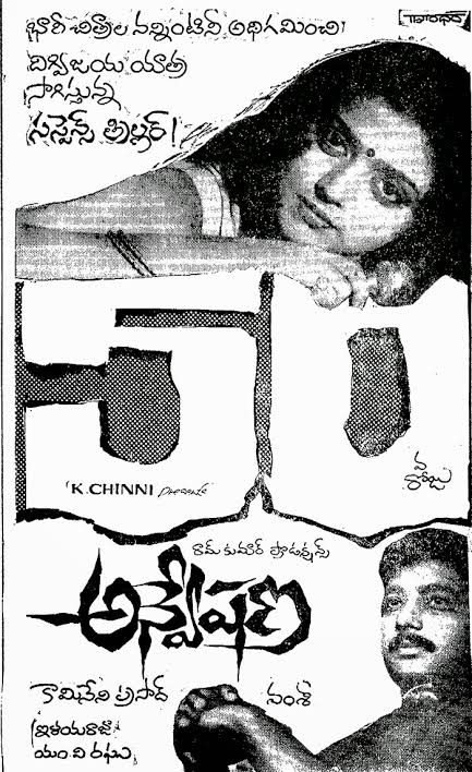 Synopsis : Anveshana is a 1985 Indian Telugu-language mystery thriller film written and directed by Vamsy. The film stars Karthik, Bhanupriya, Kaikala Satyanarayana, and Sarath Babu, with music composed by Ilayaraja. The story follows an ornithologist and a police officer who arrive in a forest to investigate a series of killings allegedly committed by a man-eating tiger.