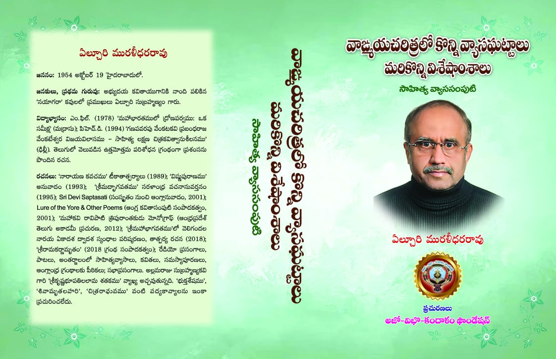 eminent Telugu and Sanskrit scholar Dr. Elchuri Muralidhara Rao’s magnum opus (essays) on certain problematic and complex issues/themes in the history of Telugu and Sanskrit literatures pertaining mainly to authorship, authorial historicity, authentic text etc., and his considered solutions to them.