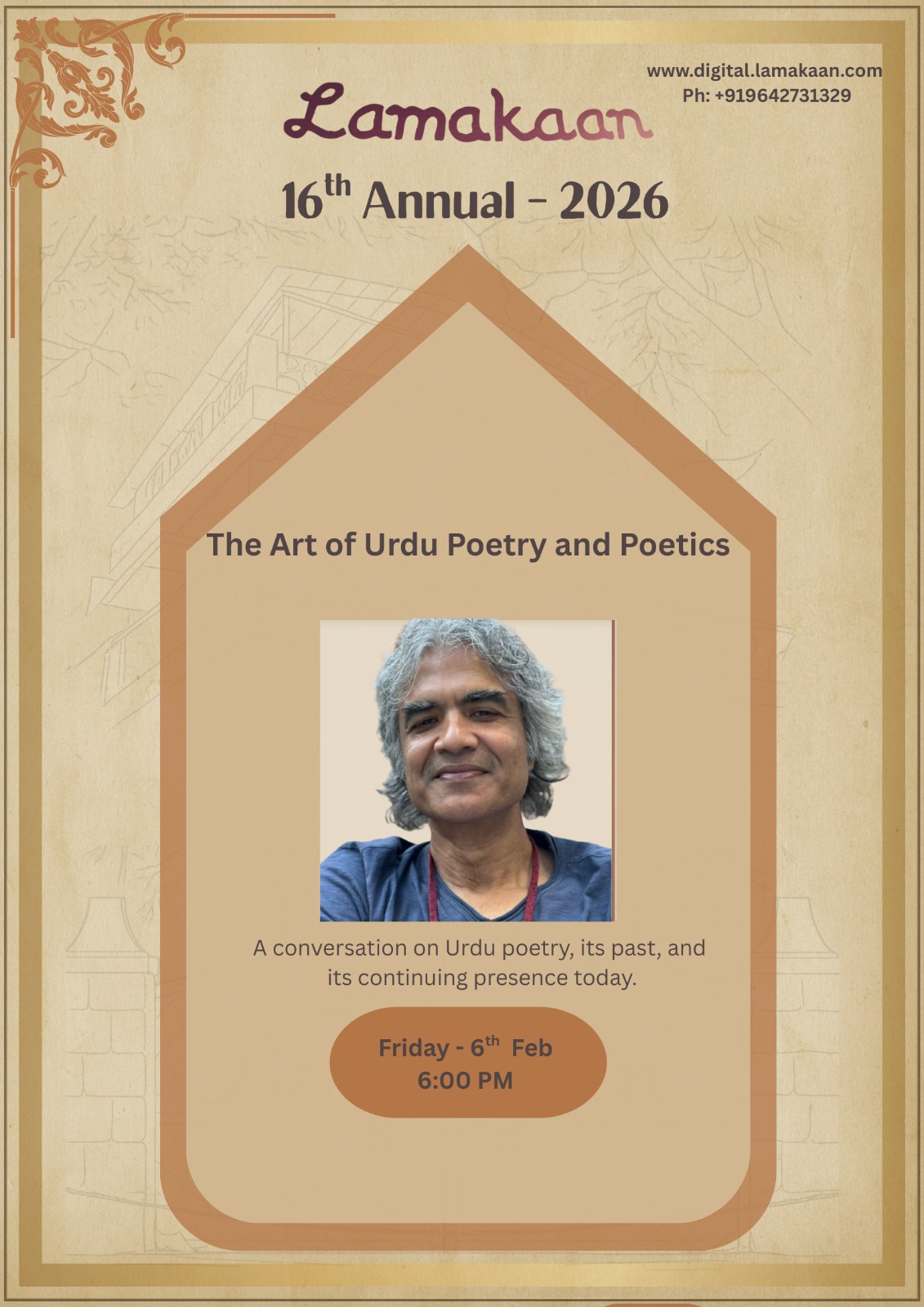Join us for an immersive journey into the rich and evocative world of Urdu poetry. This talk will explore its deep-rooted history and traditions, spotlighting key forms such as the ghazal, nazm, and marsiya. It will delve into Urdu poetry’s metaphors and similes, its legendary poets, and the socio-cultural currents that have shaped its evolution from classical poetics to its engagement with modernism, socialism, and feminism.