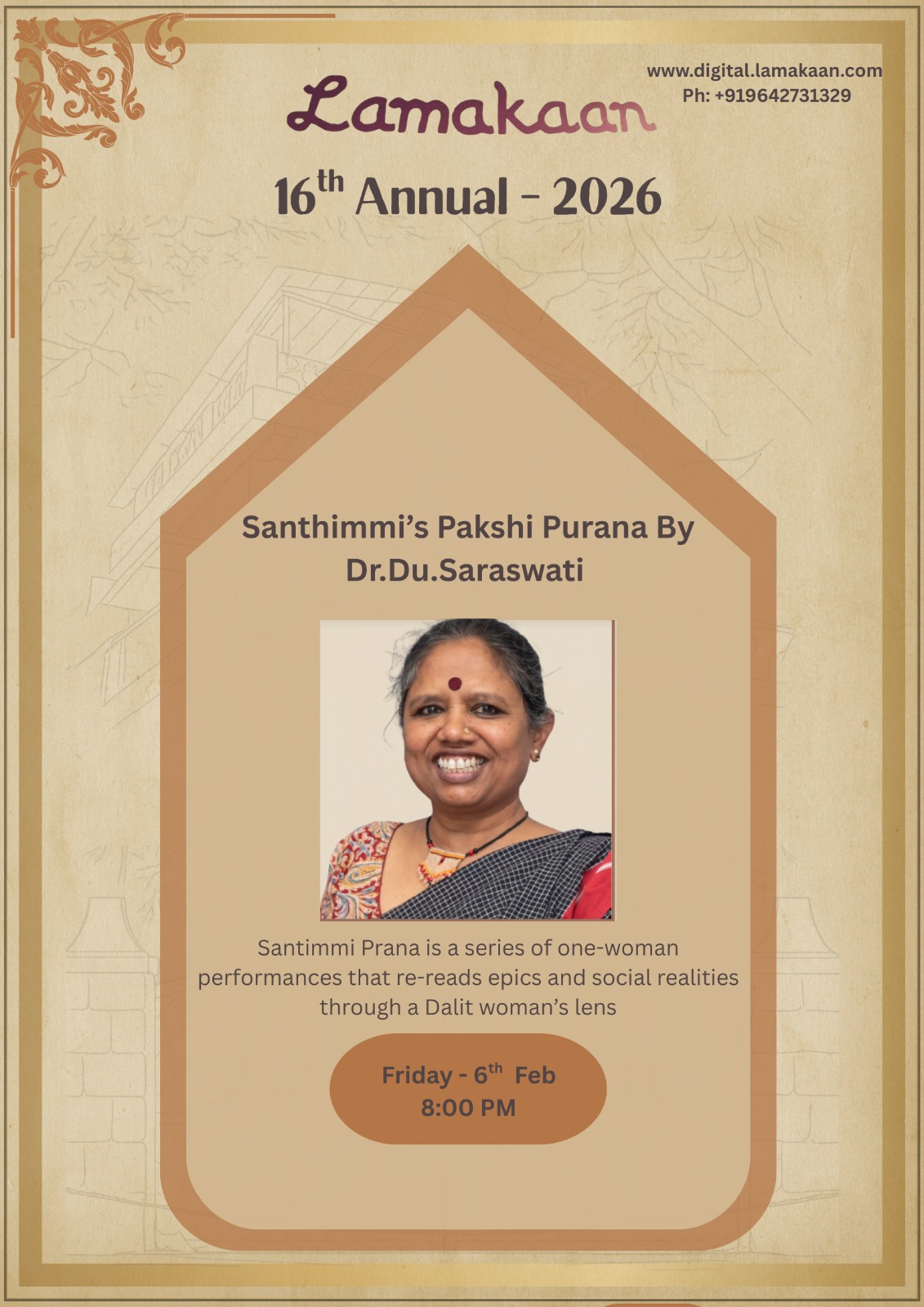 Santimmi prana is a series of one woman performances. There are six puranas like santimmi ramayana, santimmi buddhayana, santimmi soundarya purana, santimmi lav purana, santimmi election purana, santimmi election purana covering the issues of epic ramayana, concept of beauty, concept love, buddha's life, toxic masculinity and electoral politics This is an attempt to understand the issues from dalit women's perspective to break the myth of dalit women whose wisdom, world views are marginalized. Santimmi pakshipurana deals with toxic masculinity. It was written when a small girl was raped in Kashmir inside the temple. Toxic masculinity is an out come patriarchy which is not only harmful for women but also kills the human being in men. This playmakes an attempt to reach out the human among men through male bird world which is creative, caring and nurturing.