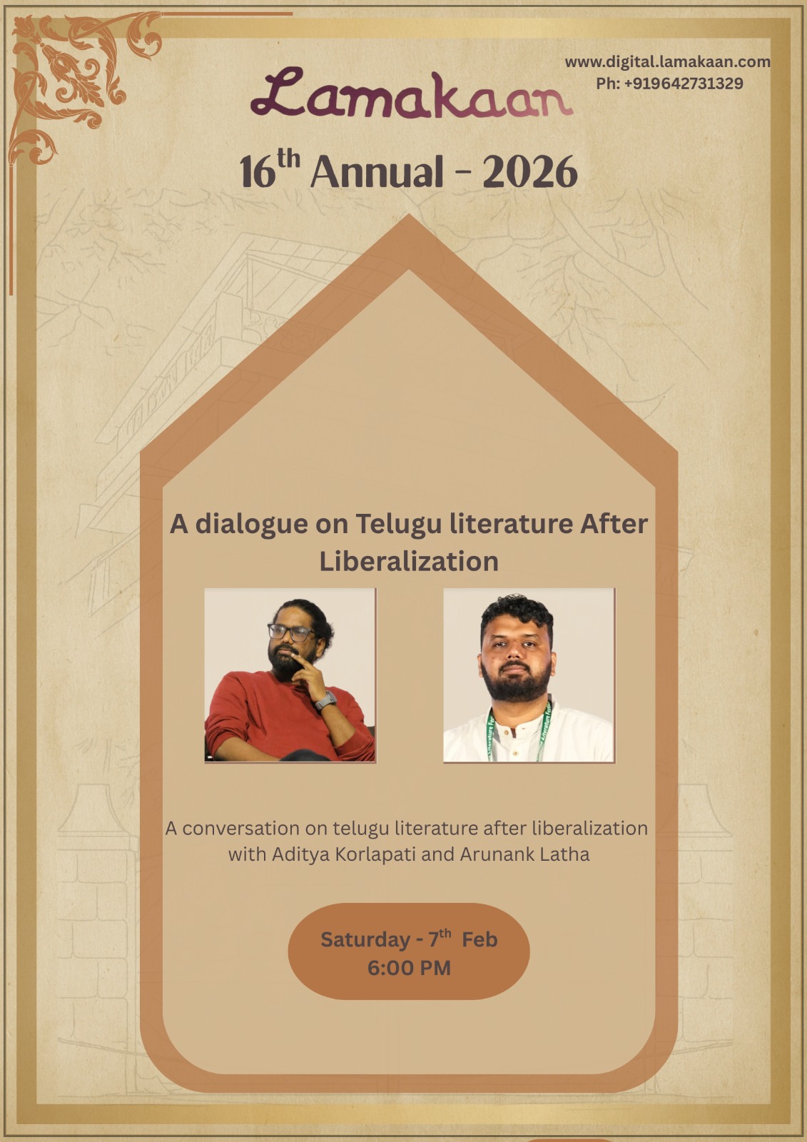 Event Page «Prev From Feb 1, '26 to Mar 3, '26 Next» 10310 Discussion on Telugu Literature Sat Feb 7, 6:00 PM Lamakaan A discussion on Telugu Literature after Telugu Literature with Aditya Korlapati and Aruanank Lata