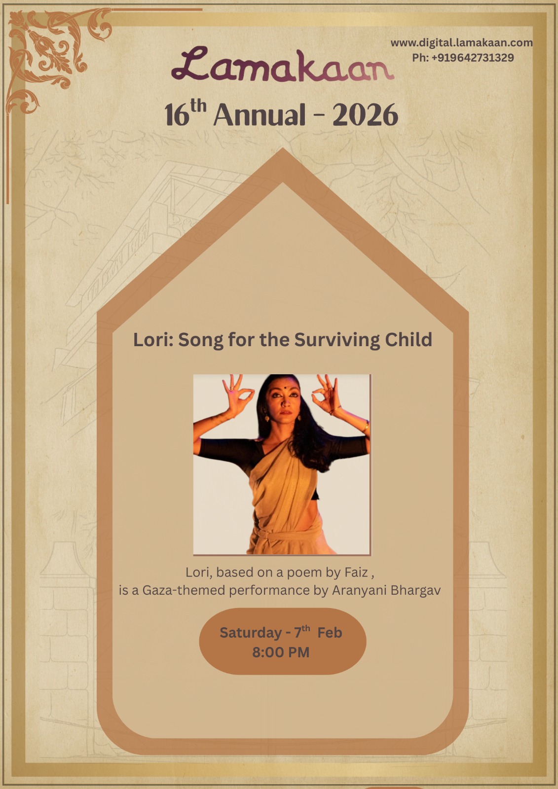 Based on a 1981 poem by the well known world poet Faiz Ahmed Faiz, Lori is a devastating depiction of a person who witnesses a series of air strikes in a refugee camp during war. Amidst the carnage and destruction, are the mutilated corpses of an entire family – a mother, father, a young boy and his elder sister. As she grieves, she hears the muffled cry of a child coming from underneath a pile of bodies. As she pulls the child out, she embraces the child and sings him a lullaby, trying to distract the little one from the horrific scene in front of them. write a brief in one sentence Concept and choreography - Aranyani Poetry - Faiz Ahmed Faiz Recitation - Shabana Azmi Music - Fragment of Light (Ganesh K and Leslie Charles)