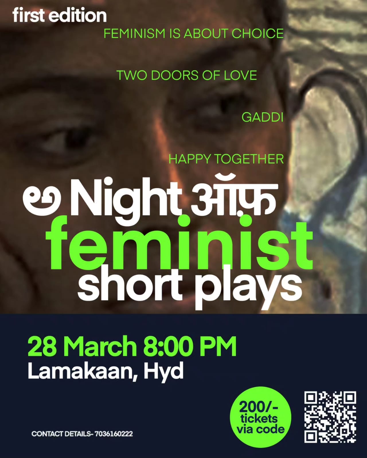 The night is a collection of 4 new short plays, that are feminist, by various artists (mostly women from Hyderabad)