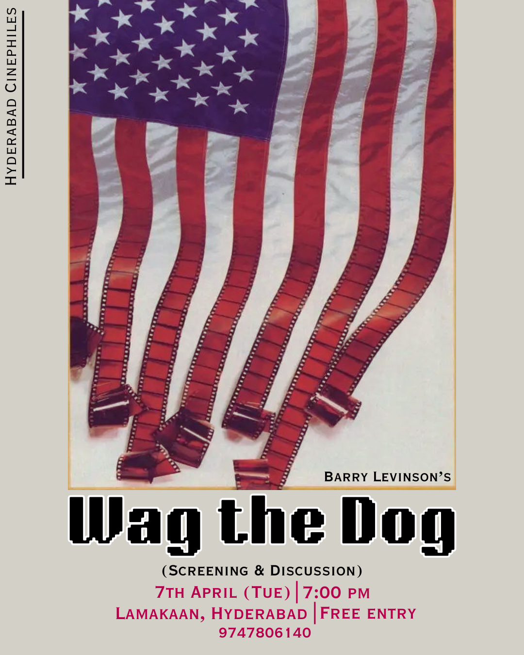Join us for a screening of "Wag the Dog" on 7th April, Tuesday, at 7pm, at Lamakaan, Banjara Hills, Hyderabad. Entry is free.
