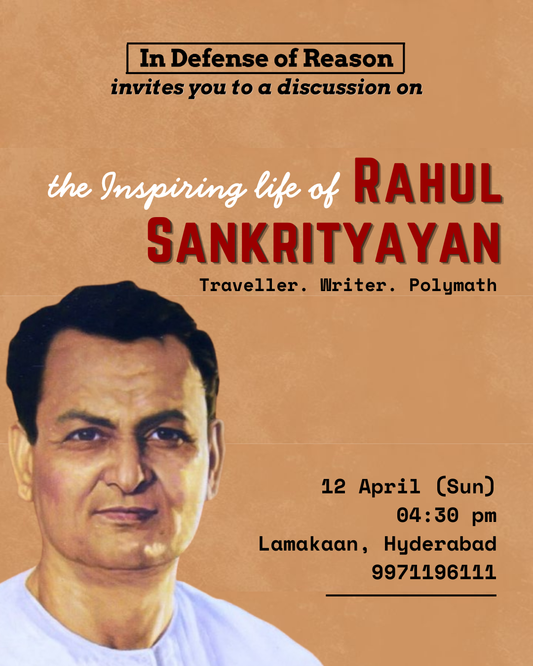 In Defense of Reason cordially invites one and all to discuss about the relevance of the ideas of Rahul Sankrityayan and what inspiration we can draw from his life and work to solve the problems we are facing today.
